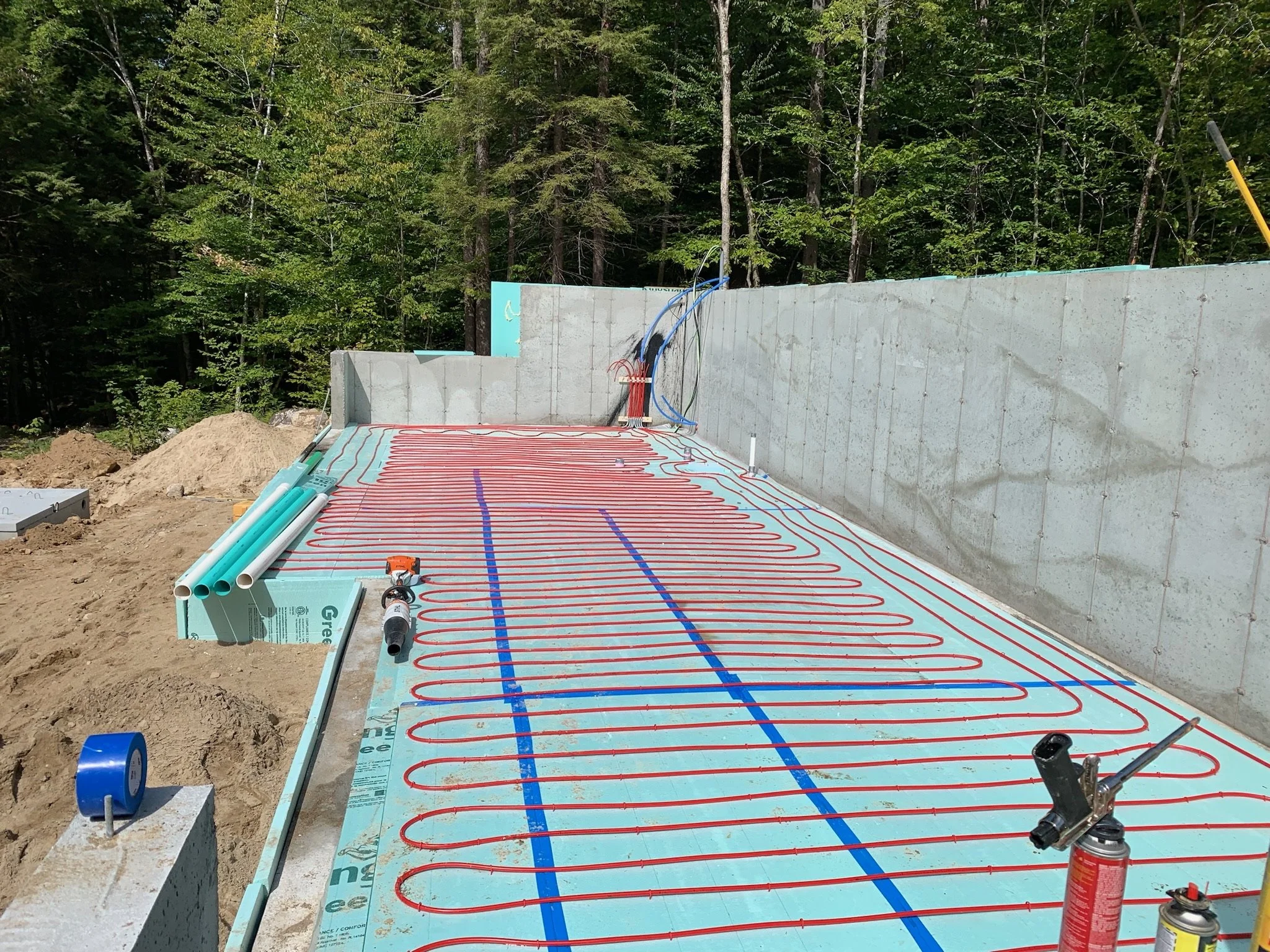 Poured concrete hydronic radiant heat floors both levels